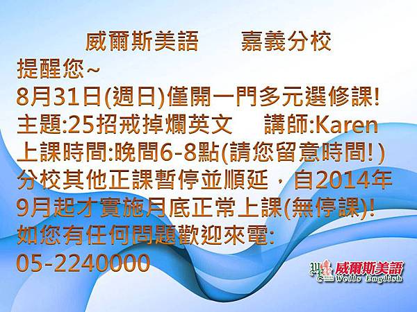 歡迎光臨威爾斯美語嘉義分校在痞客邦的小天地